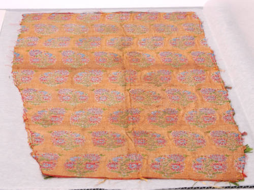 DescriptionGold background, assymetrical rows of flower shrub in palmette form in red, blue, and green.Exhibition HistoryNo exhibition history known at this time.