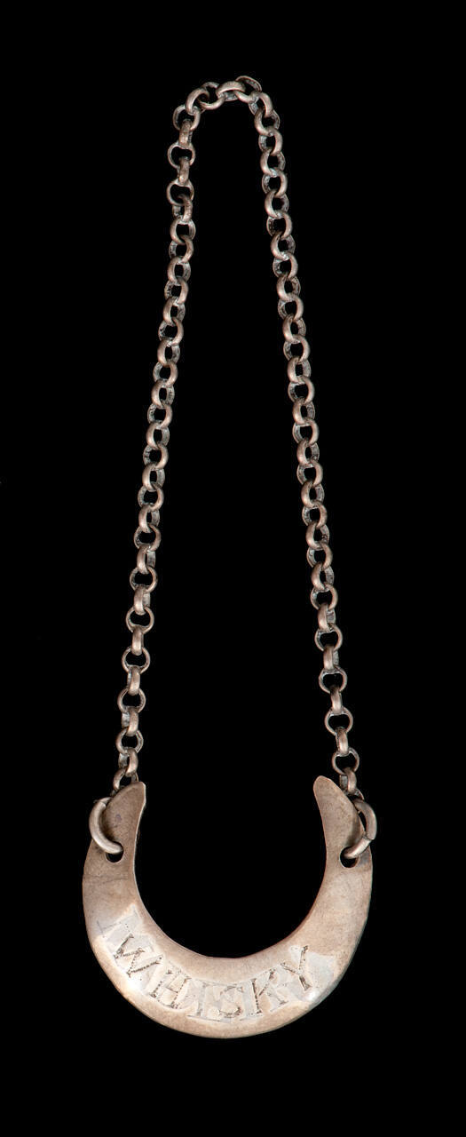 DescriptionExtended half-moon shape with chain; labeled: Whiskey superimposed over Madeira.