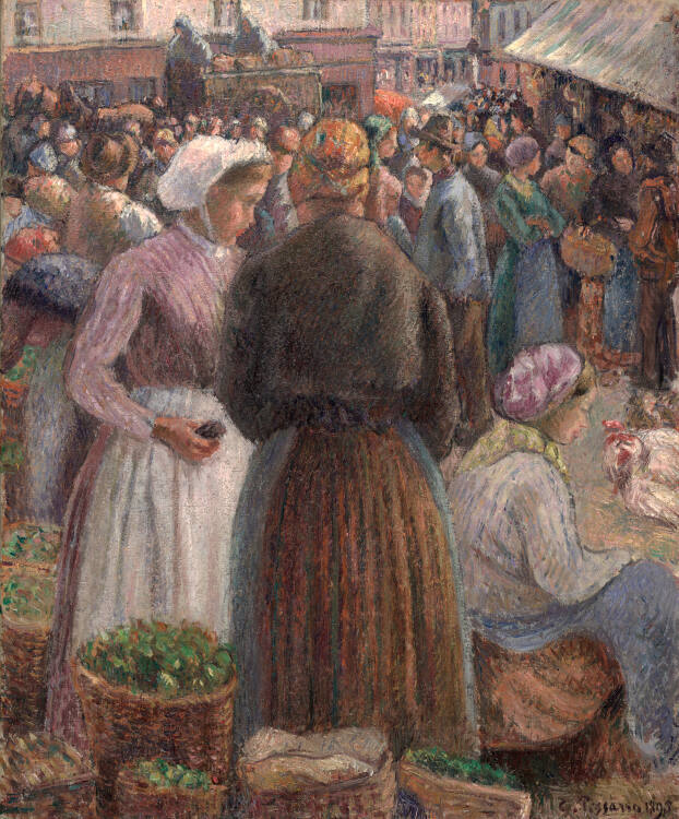 Danielle Hampton Cullen, “Camille Pissarro, The Market at Pontoise (or The Market at Gisors), 1895,” catalogue entry, and Mary Schafer, “Camille Pissarro, The Market at Pontoise (or The Market at Gisors), 1895,” technical entry in French Paintings and Pastels, 1600–1945: The Collections of The Nelson-Atkins Museum of Art, ed. Aimee Marcereau DeGalan (Kansas City: The Nelson-Atkins Museum of Art, 2023), https://doi.org/10.37764/78973.5.648.