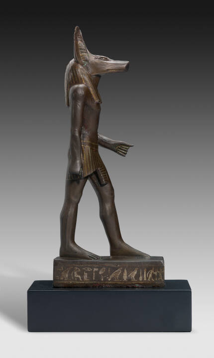 An Egyptian offered this statue as a gift to Anubis, hoping for a favor in return-so much so that he paid for expensive silver decoration on Anubis' dress and eye.