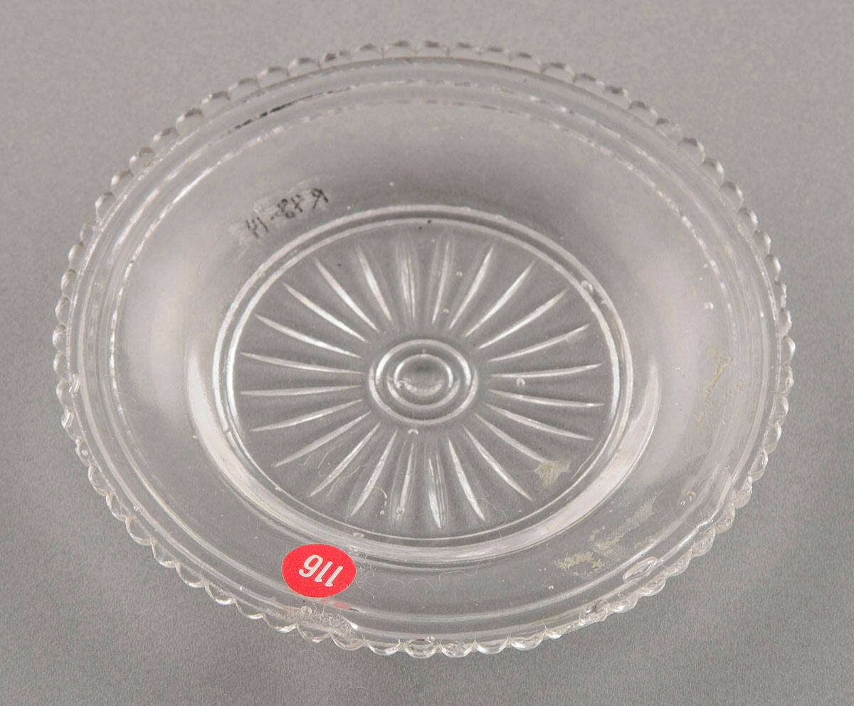 DescriptionSunburst Pattern: 24 rays, 66 even scallops. R-538. Common.