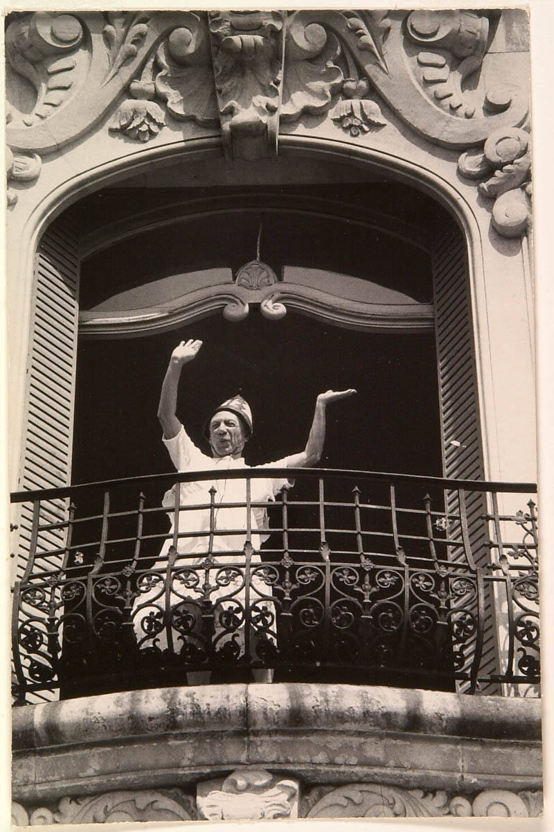 Picasso, in African War Helmet and a Petticoat, Dances on Bedroom Balcony