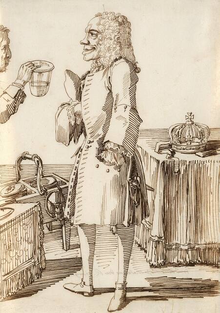 Caricature Drawings by Pier Leone Ghezzi (Rome 1674-1755); The Property of The Rt. Hon. Lord Braybrooke (London: Sotheby’s, December 10, 1979), 82-83, (repro.), as James Stuart, The Old Pretender with His Physician, Monsieur De La Rose.