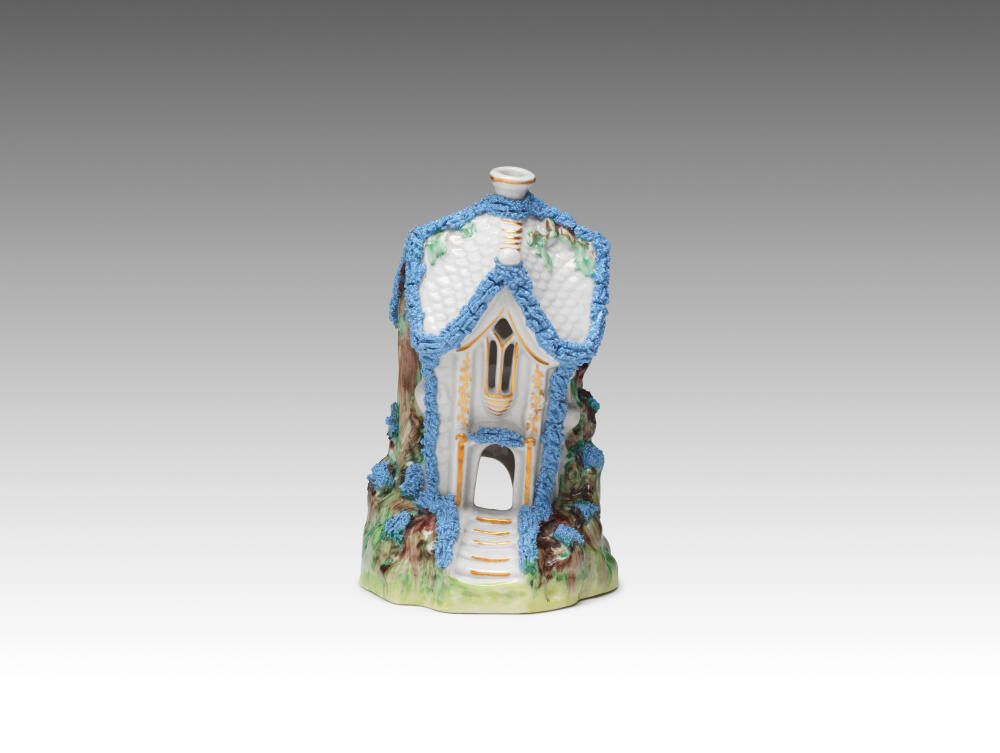 Description"Gothic" revival cottage. White and gilt outlined with blue applied vines. Back of cottage and base brushed in brown/green.Exhibition HistoryCastles, Cottages, and Crime, The Nelson-Atkins Museum of Art, Kansas City, Missouri, July 10 2021–March 06 2022, no cat.