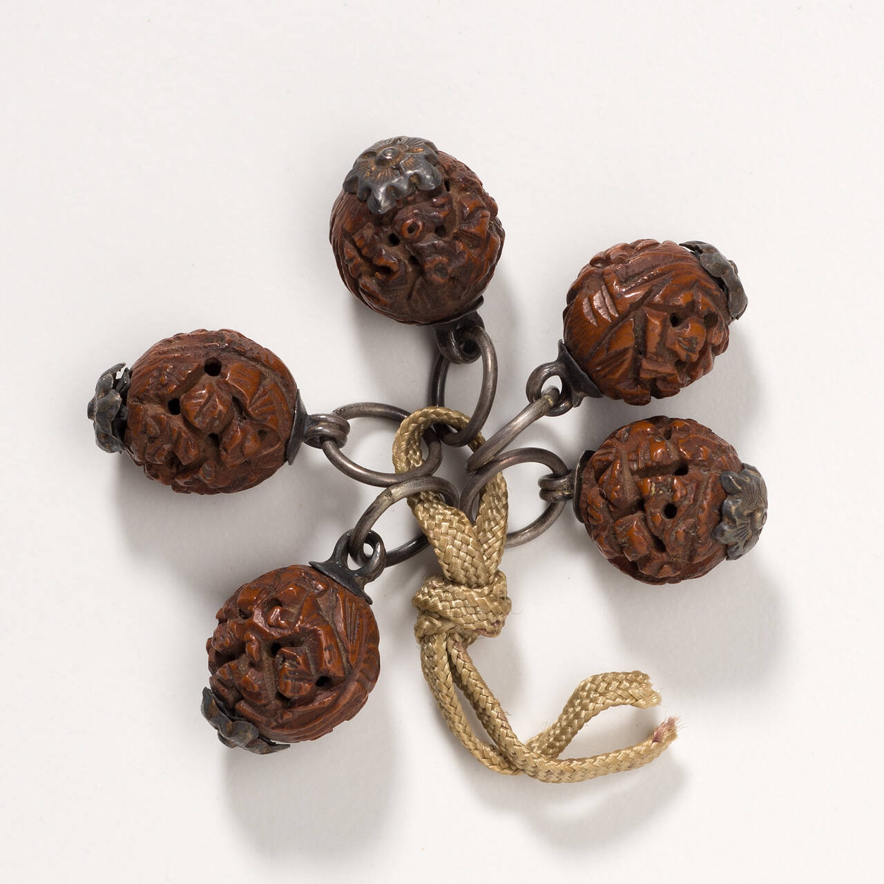DescriptionFive wood buttons, worn by Manchu and Chinese women.