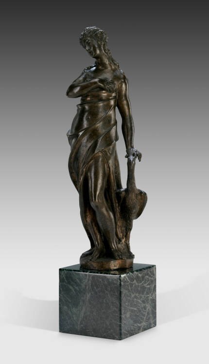 The elegant, twisted pose of this figure reflects the influence of central Italian Mannerism and the work of Giambologna. Juno was the wife of Jupiter, king of the gods, and the peacock was a bird sacred to her.