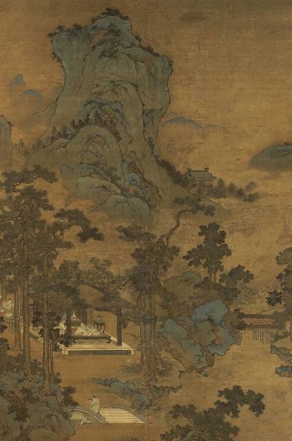 DescriptionScholar reclining in a pavilion; two attendants at left preparing wine. Towering mountain in background; stream and bridge at right. Restoration in central part: trees, waterfall and clouds.Exhibition HistoryEight Dynasties of Chinese Painting, Nelson-Gallery-Atkins Museum, Kansas City, November 7, 1980 – January 4, 1981; The Cleveland Museum of Art, February 11 – March 29, 1982, no. 141.