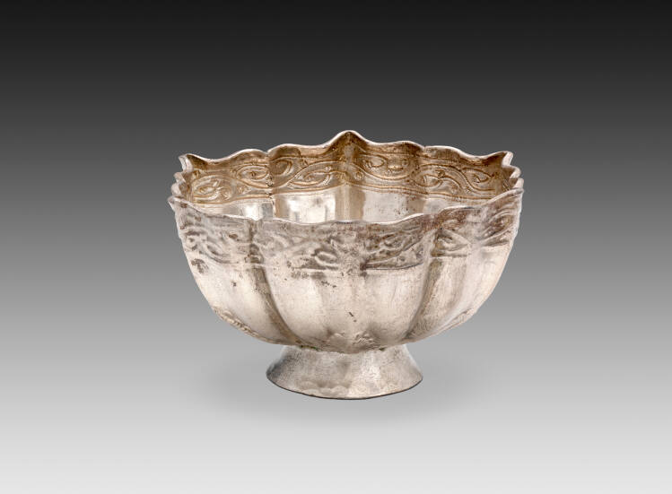 DescriptionCup with fluted sides in six large scallops, interior engraved in floral design.Exhibition HistoryChina Institute, New York. April 27 - June 1951.