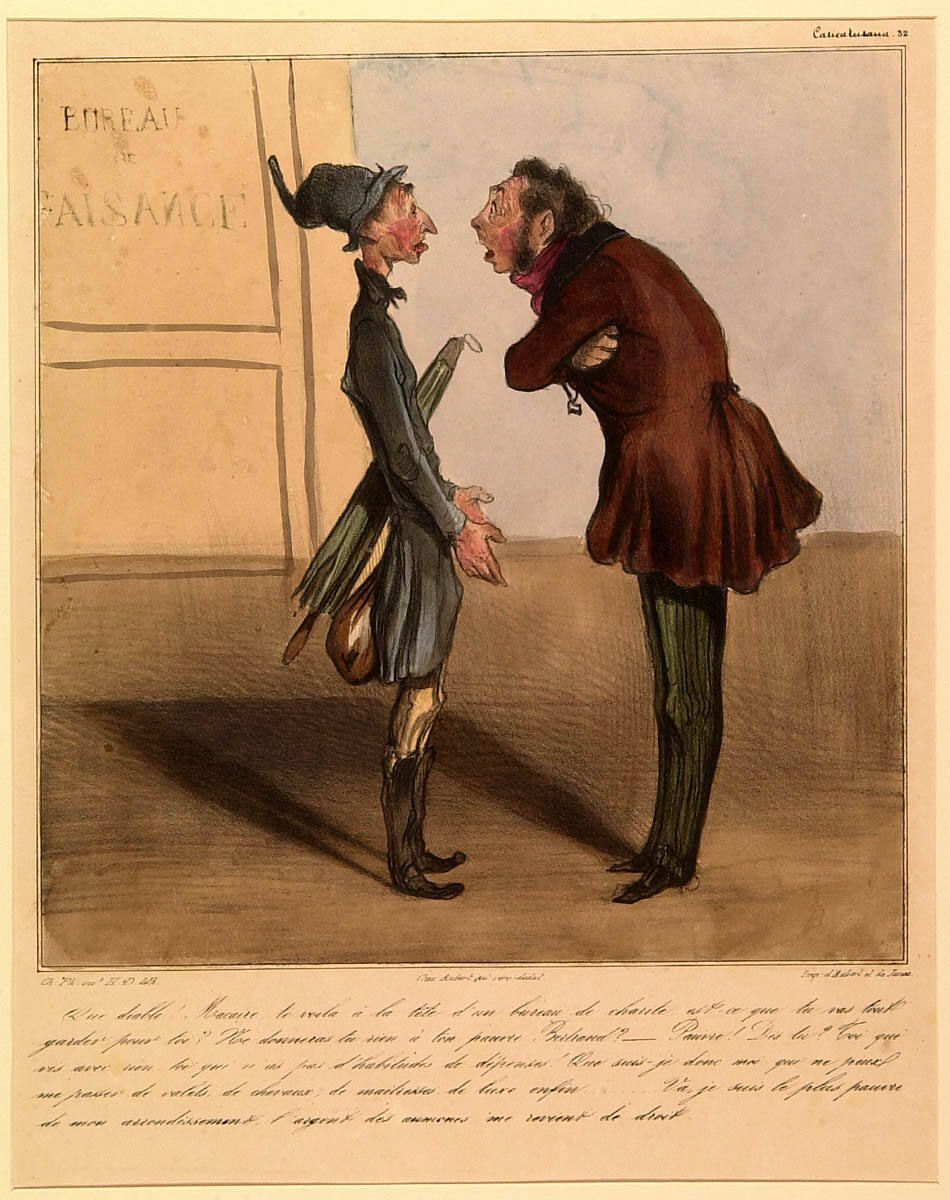 George L. McKenna, Prints, 1460-1995 (Kansas City, MO: Nelson-Atkins Museum of Art, 1996), 295-96, as Caricaturana (Les Cent Robert Macaire): Untitled (What the deuce! Macaire, there you are at the head of the welfare bureau).