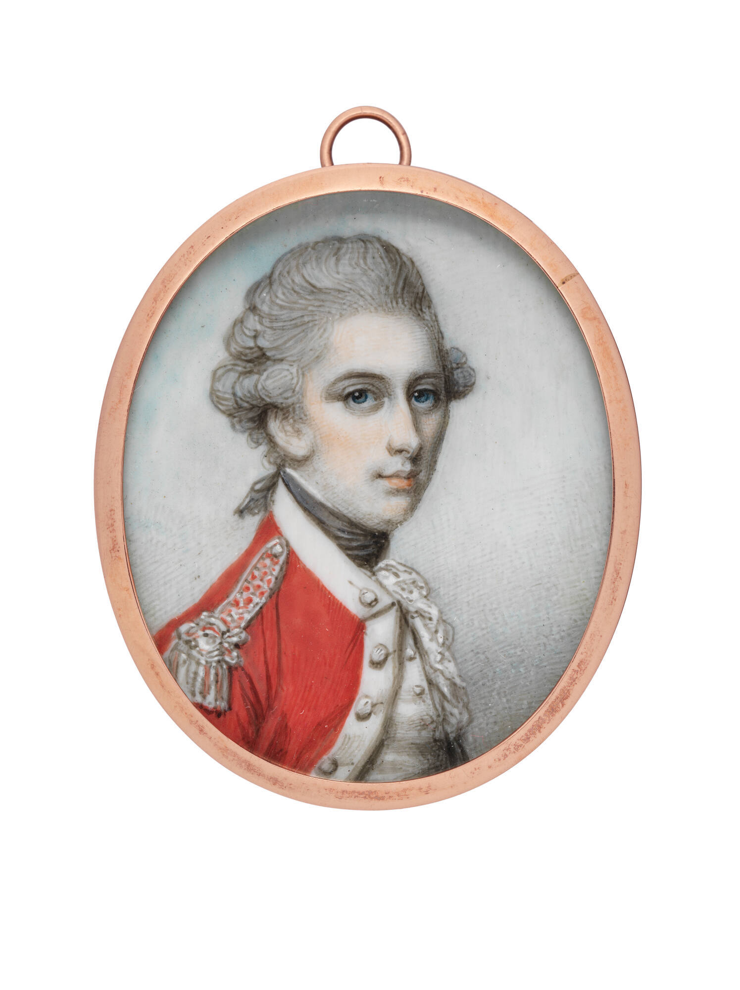 DescriptionPortrait miniature of a man with powdered hair wearing a red military coat before a sky background.Exhibition History