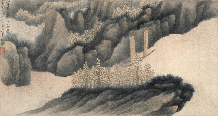 In his 50s, after living through chaotic regime changes, Gong settled down in the scenic mountains in the suburbs of Nanjing. There he created this painting, a leaf in one of his best albums.