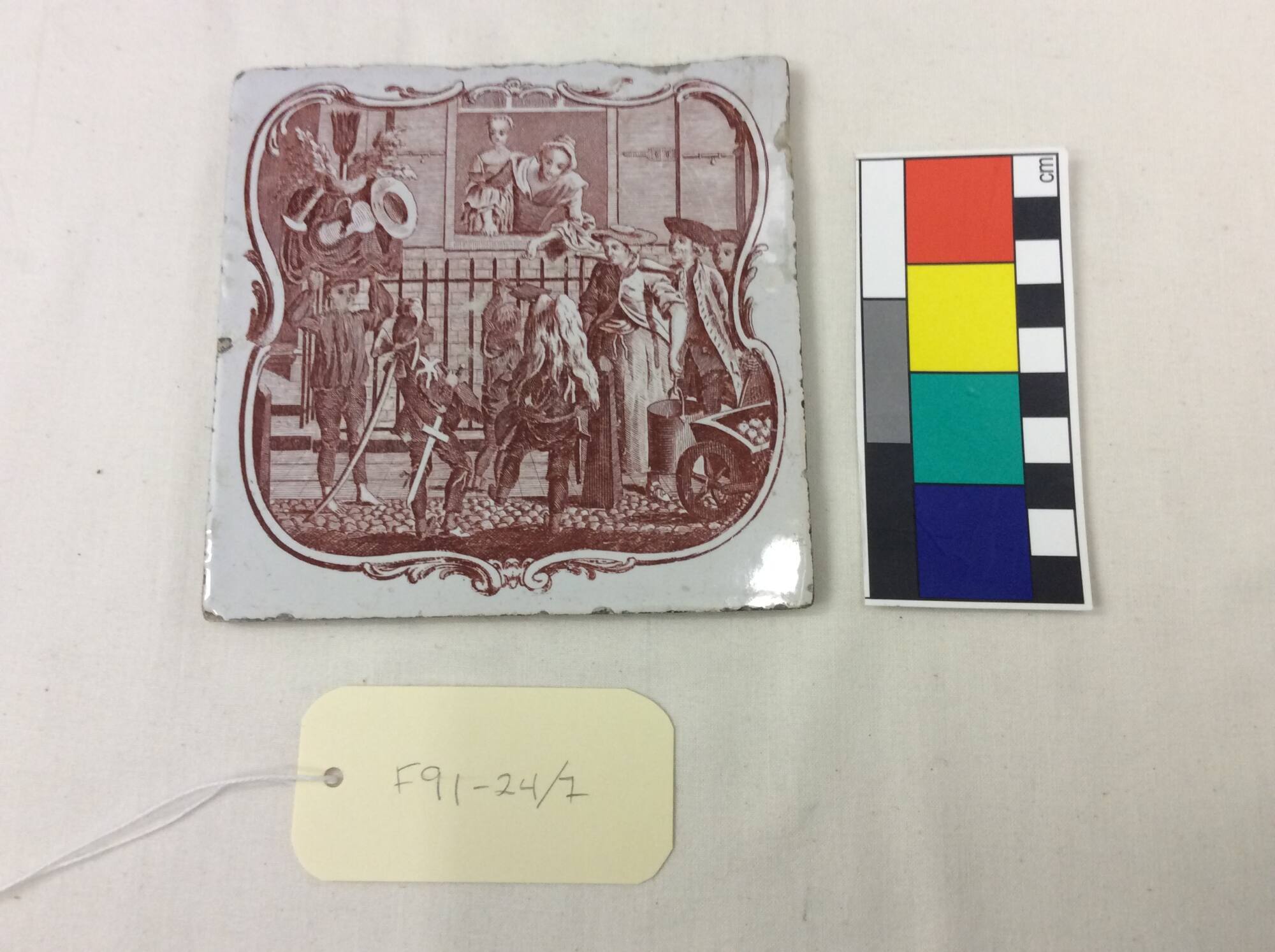 Liverpool Tile, Red Sadler Transfer- printed (Copper Plate), Scene of Child and Chimney Sweep