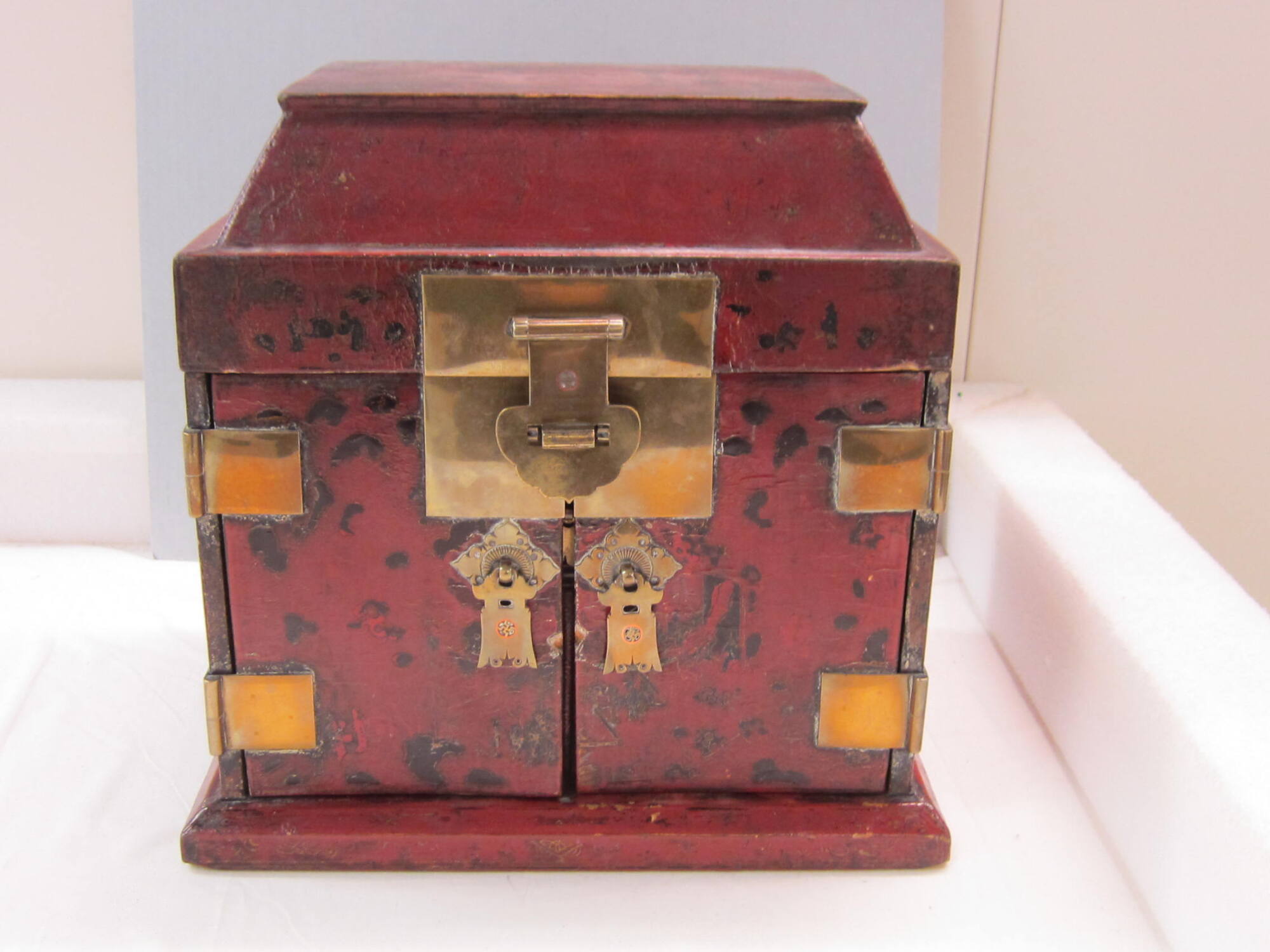 MediumLacquered wood; painted and inlaid, with brass mounts