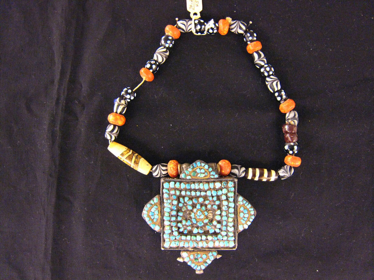 MediumSilver, turquoise, glass, carnelian, ivory, metal