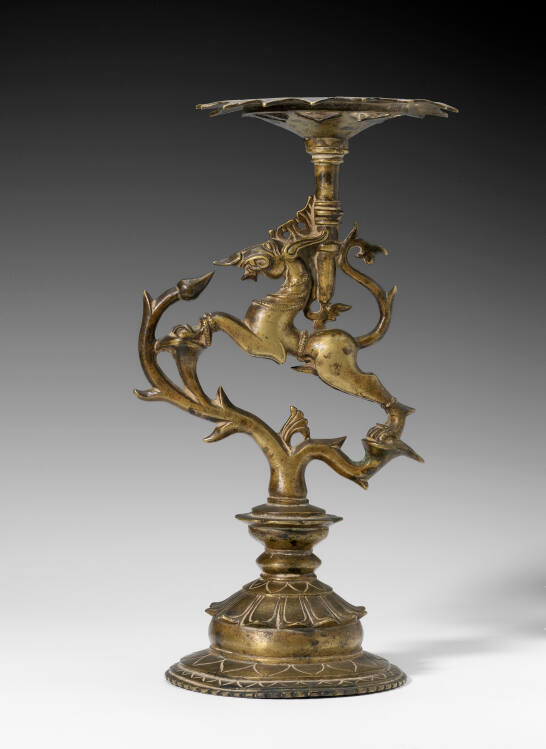 comb of a peacock and the antlers of a deer. Both the vyala and the lotus are symbols of the life force. This object may