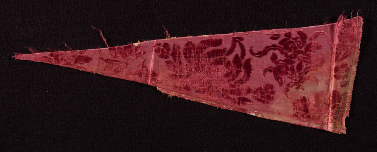 DescriptionDark red velvet with chrysanthemum design.