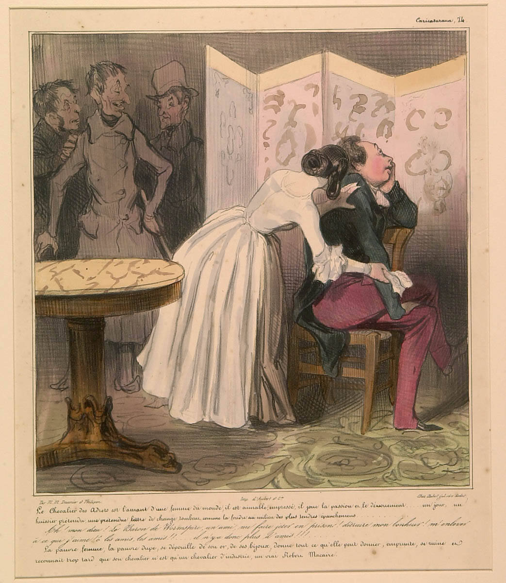 George L. McKenna, Prints, 1460-1995 (Kansas City, MO: Nelson-Atkins Museum of Art, 1996), 295-96, as Caricaturana (Les Cent Robert Macaire): Untitled (The Chevalier des Arrets [sic] is the suitor...).