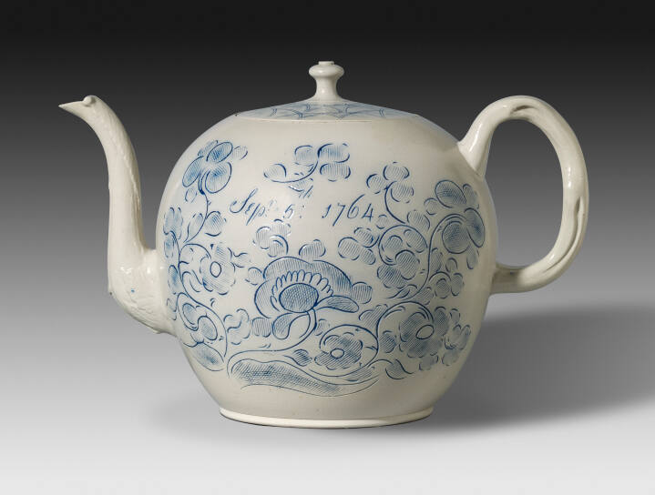Gallery LabelThe decoration of leaves and flowers was incised into the body of this pot and then filled with cobalt oxide which diffused during firing. The date most likely commemorates a day of importance to the original owner or maker.