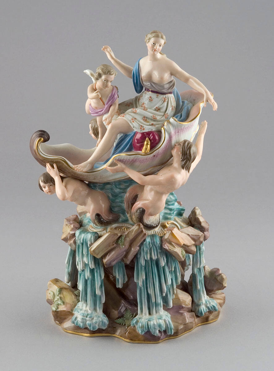 DescriptionA central figure of Venus reclines in a seashell throne, accompanied by a putto or figure of Cupid; the seashell throne is supported by three Tritons emerging from a waterfall with six cascades.ProvenanceNelson-Atkins Museum of Art, by at least 1995 [1].