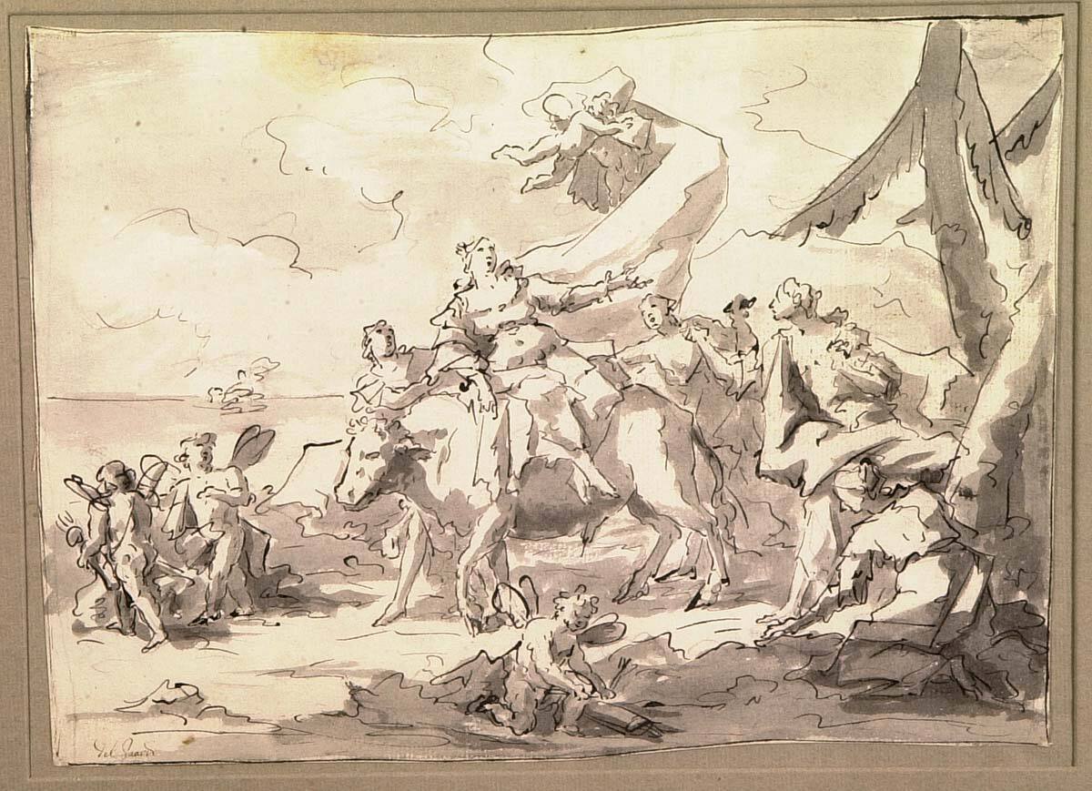 Catalogue of Important Old Master Drawings (London: Christie’s, March 25-26, 1963), 67, (repro.), as by Giovanni Antonio Guardi, as The Rape of Europe.