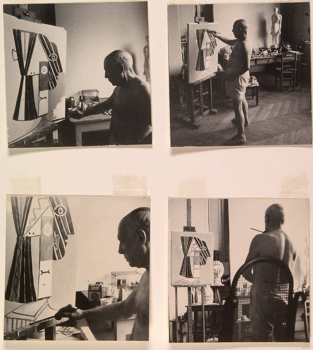 Picasso Paints Portrait of Jacqueline, Working from Midafternoon to Midnight. First Photos Ever Taken of Picasso Painting in Studio