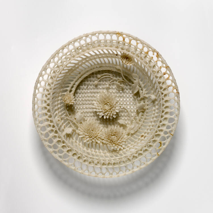 DescriptionImperial Chien Lung open-work porcelain miniature dish; chrysanthemums, carved in high relief, decorate the inside. With a stand.