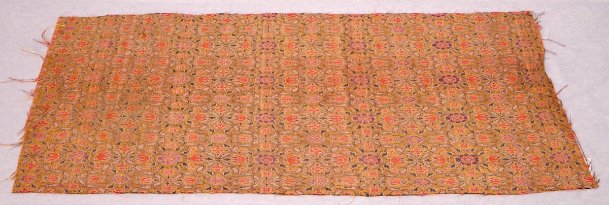DescriptionGold background, medallion pattern, conventionalized flowers in orange, green, and lavender.Exhibition HistoryNo exhibition history known at this time.