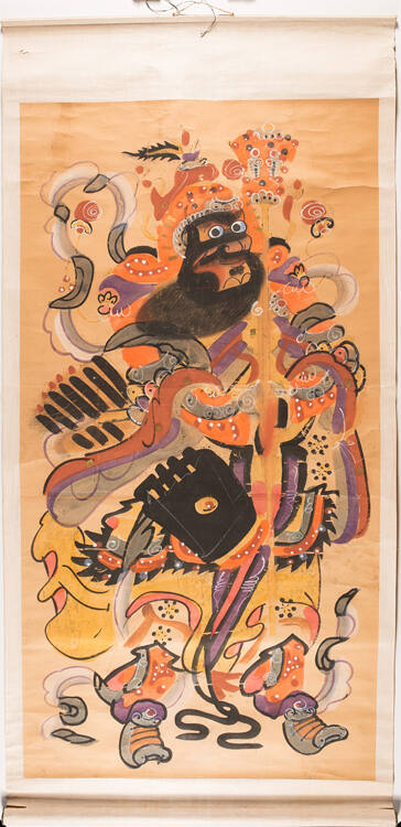 Gallery LabelDoor gods are assigned to watch all who enter the house. The door panels in a traditional house usually open inward, so that the paired gods stand facing each other. There are many different door gods, and the Chinese choose from many historical or fabled figures. Adding to the variety of prints in a home, certain types of gods were used on certain doors. For example, warriors like the ones in this print are delegated to guard a main gate that faces the street.