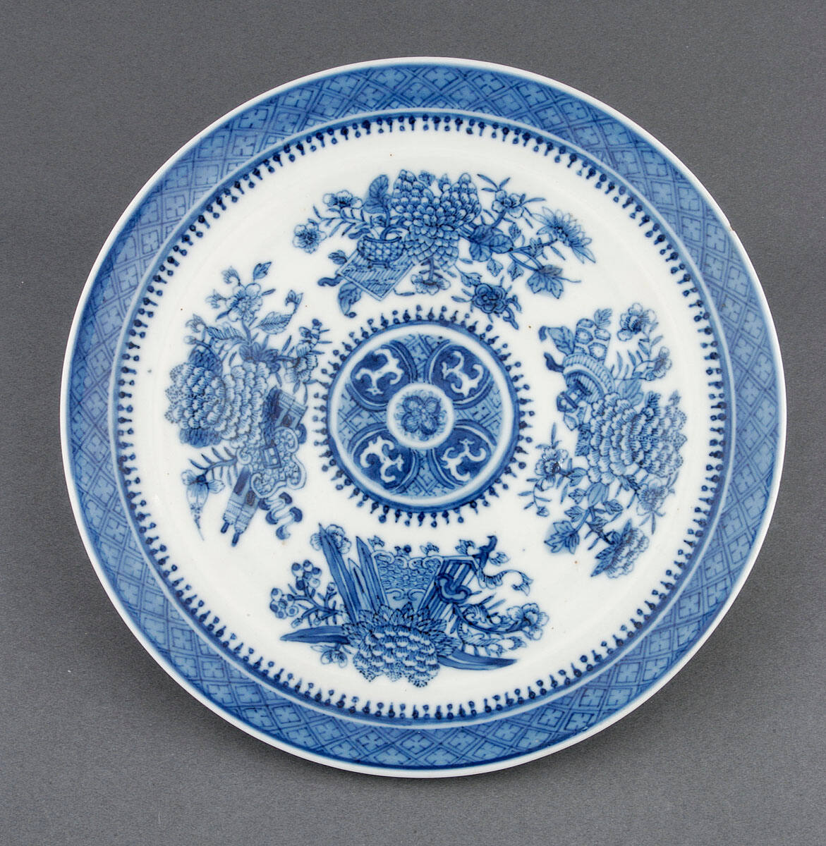 DescriptionUnderglaze blue, with floral motives related to Fitzhugh border decoration.