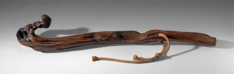 Gallery LabelBuddhist monks carry staffs or wands in various sizes and shapes. This one is an example of a nyoi, meaning “as desired.” In China, these scepters were also emblems of scholars. The form may have evolved from a scepter held by Chinese scholar during debates from around the 300s C.E. In its Buddhist context, the stylized cloud shape at one end symbolized the transmission of the Dharma (the teachings of the Buddha). This scepter bears and inscription indicating that it was made for the Zen priest Sengai Gibon (Japanese, 1750–1837).