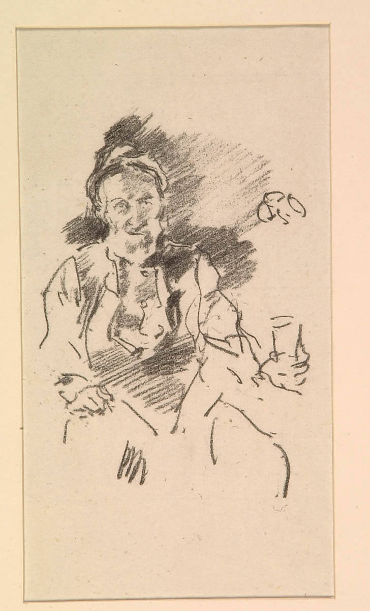 Gallery LabelJames Abbott McNeill Whistler made multiple portraits of blacksmith George Govier while working in Lyme Regis. Govier’s forge was on the same street as Whistler’s studio, and the artist executed The Master Smith while chatting with Govier. He also drew Govier at work. In The Old Smith’s Story, Govier stands over the furnace while his son, Samuel, works the bellows.
