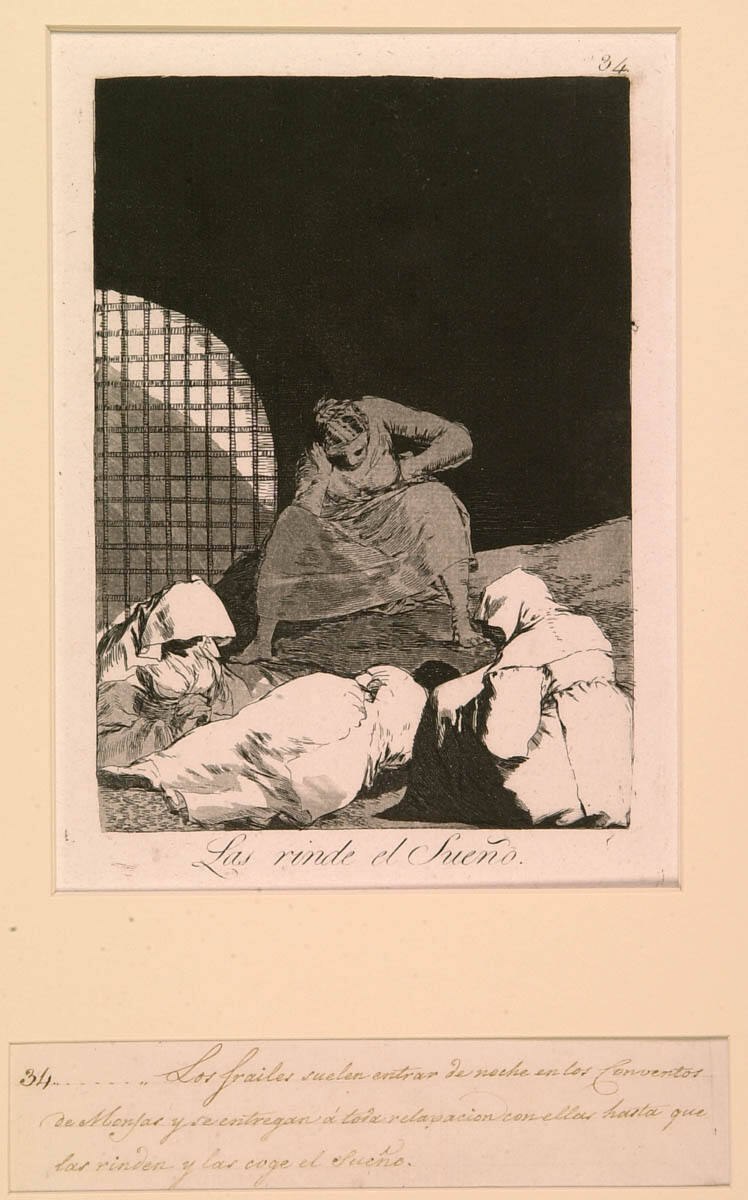 Purchased from Alden Galleries by The Nelson-Atkins Museum of Art, Kansas City, MO, 1933.Tomás Harris, Goya Engravings and Lithographs, vol. 2 (Oxford: Bruno Cassirer, 1964), no. 69, p. 106, (repro.), as Las rinde el Sueño. (Sleep overcomes them).