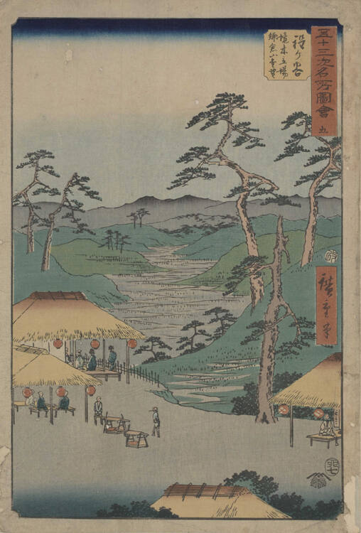 No. 5, Hodogaya: Distant View of the Kamakura Mountains from the Boundary Tree Posthouse