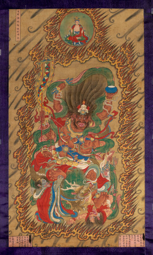 MediumHanging scroll; ink colors and gold on silk