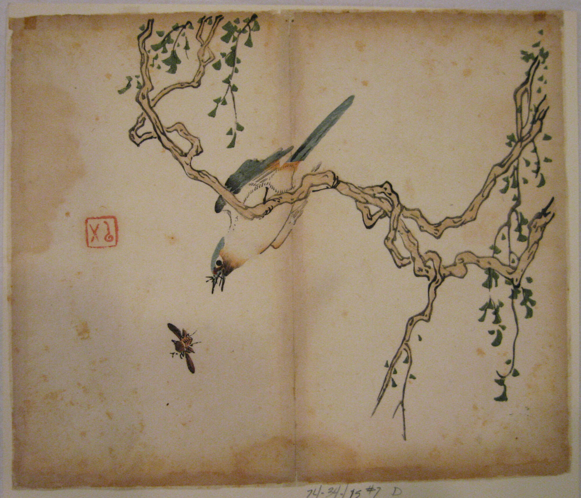 Gallery LabelThese prints, all illustrated by one of the manual's artists, Ling Yunhan, reveal diverse techniques and styles, including ink monochrome; fine line and colors; and boneless (motif without outline). Color and ink in subtle gradations were precisely printed in the minute spaces inside the images of feathers, leaves and petals.