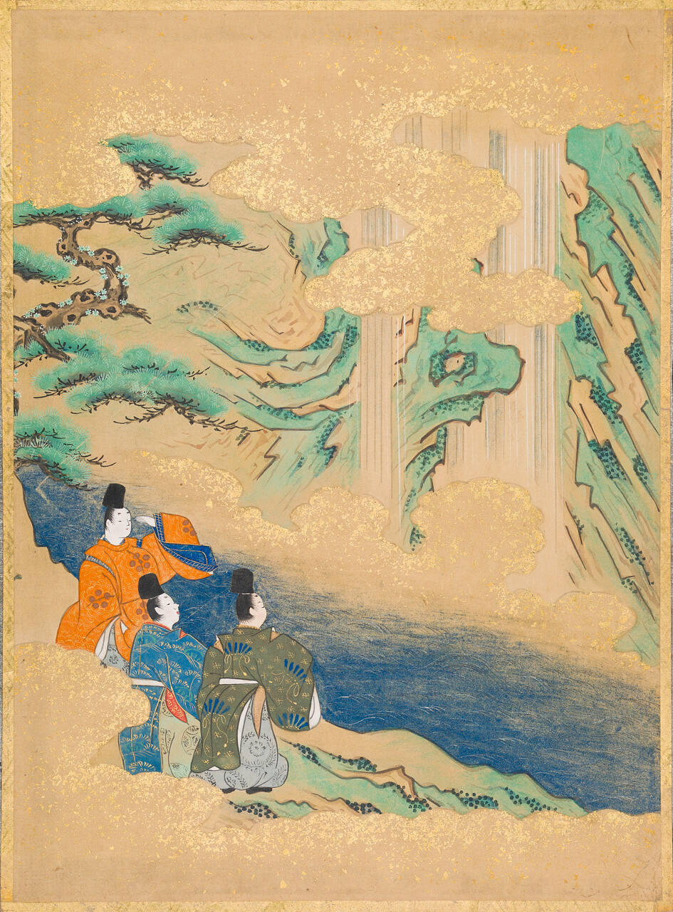 DescriptionDuring a visit to his estate in Settsu, a man and his friends climbed a mountain to see Nunobiki Falls.Gallery LabelThe Tales of Ise provides an intriguing glimpse into the Japanese aristocratic way of life during the Heian period (794–1185 C.E.). This compilation of poems and narratives describes the adventures of the courtier Ariwara no Narihira (825–880 C.E.) and his feelings of joy, passion, longing, sadness, and frustration. In 1608, the merchant Suminokura Soan published Sagabon (Saga books), a printed book of the tales. Its illustrations became the models for many paintings, including this one.
