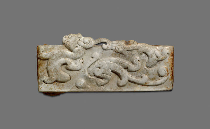 DescriptionJade piece from sword scabbard. White, dragons in relief.ProvenanceWith Dr. Otto Burchard, Peiping (modern-day Beijing), China, by April 30, 1934 [1];