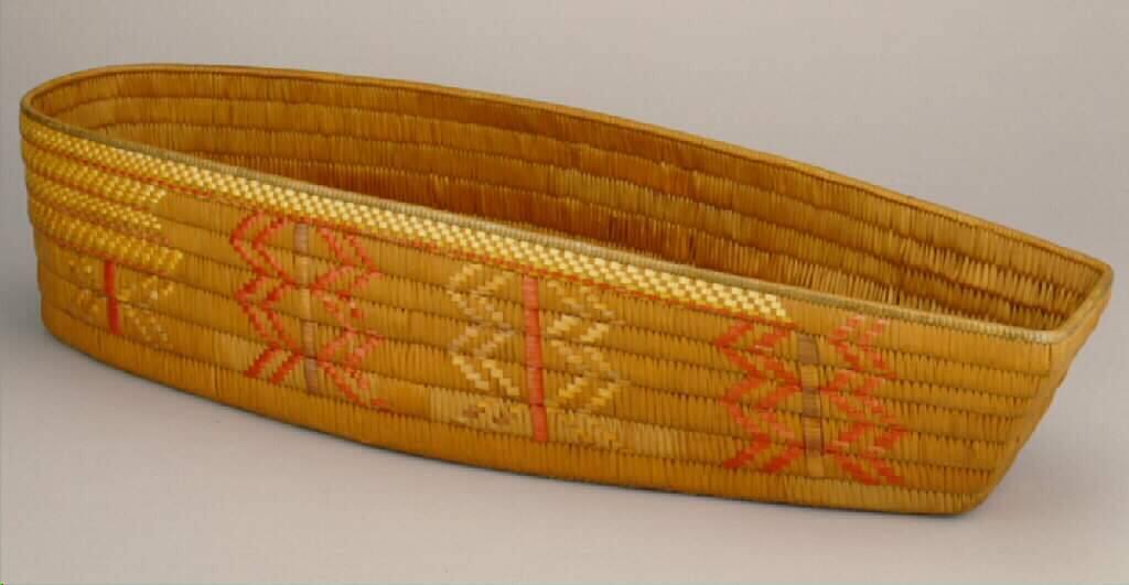 DescriptionFour bands of natural, green, and orange around top. in brown and red.