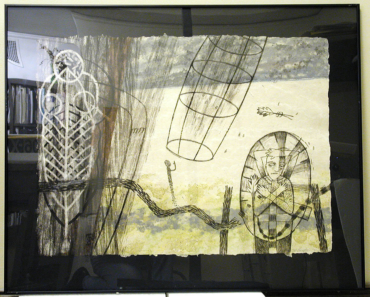MediumTriptych; etching and handmade paper with colored pulp imagery
