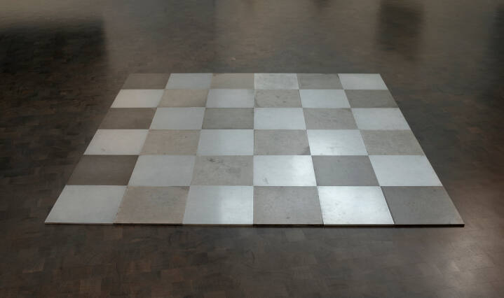 Composed of two elemental materials in a grid, Aluminum-Magnesium Plain is a quintessentially Minimalist object. It is neither representative nor symbolic—it simply is what it is. Like many of Carl Andre’s works, Aluminum-Magnesium Plain is a floor piece. He denies the sculpture the privileged place of a pedestal and invites us to walk upon the tiles. In this way, the artist brings art low and humbles it.