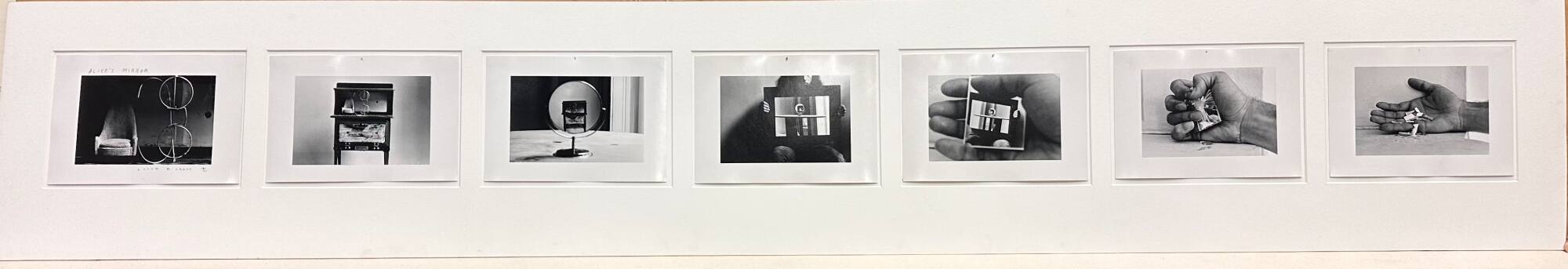 In his sequenced images, Duane Michals creates alternate universes not unlike the one Alice fell into in Alice in Wonderland, where objects shrink and grow in uncanny proportion. In each photograph of Alice’s Mirror, Michals adds a new reality reflected through a series of mirrors that are ultimately shattered. “I was dissatisfied with the single image because I could not bend it to a wider expression,” said Michals. “In a sequence the sum total of all the photographs suggests something that no one picture could say.”