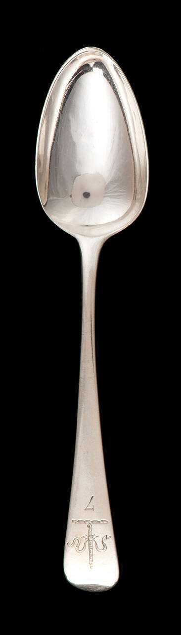 DescriptionOne of a set of 33 silver spoons (from an original set of 70) each individually engraved with a number from 1 to 34 with no. 30 missing. All also engraved with the crest of the City of Chester (snake and sword).