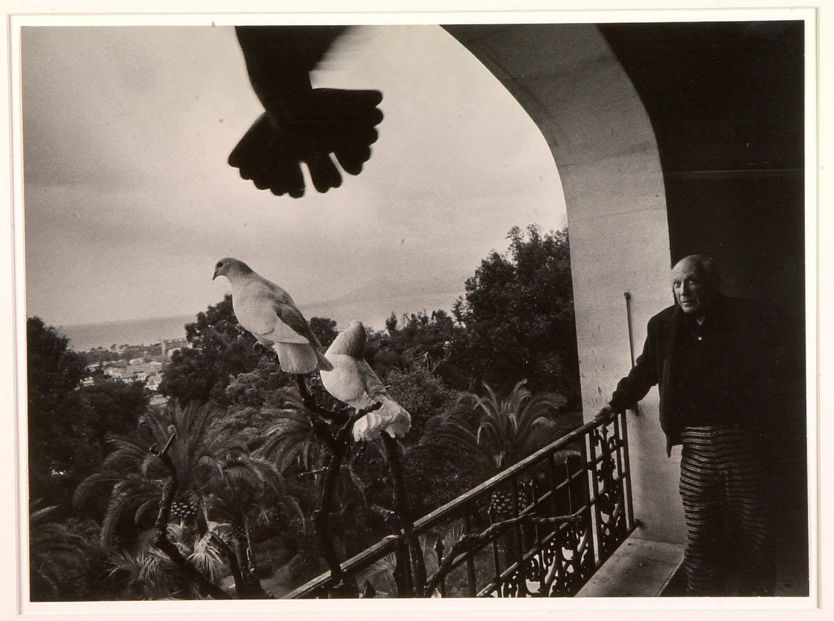 Picasso on Third Floor Balcony at La Californie, Where Pigeons Live