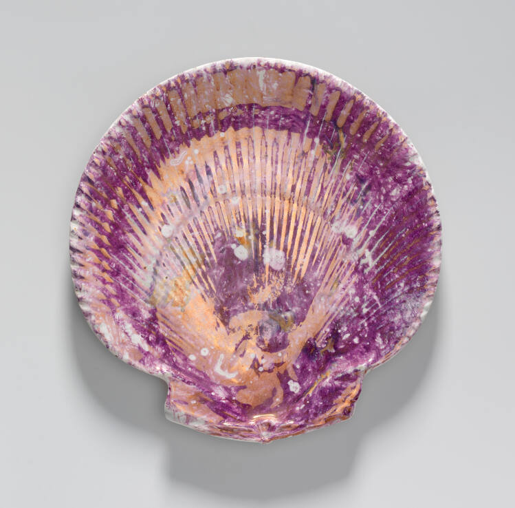 Gallery LabelPart of a 22-piece dessert service, this bowl and the two shell-shaped plates are glazed with moonlight lustre, a process developed by Wedgwood between 1805 and 1815. This method uses gold metallic salts which turn varying colors when fired depending on the color of the ceramic ground. Here, the white clay body produced a mottled surface of pinks, purples and golden yellows.
