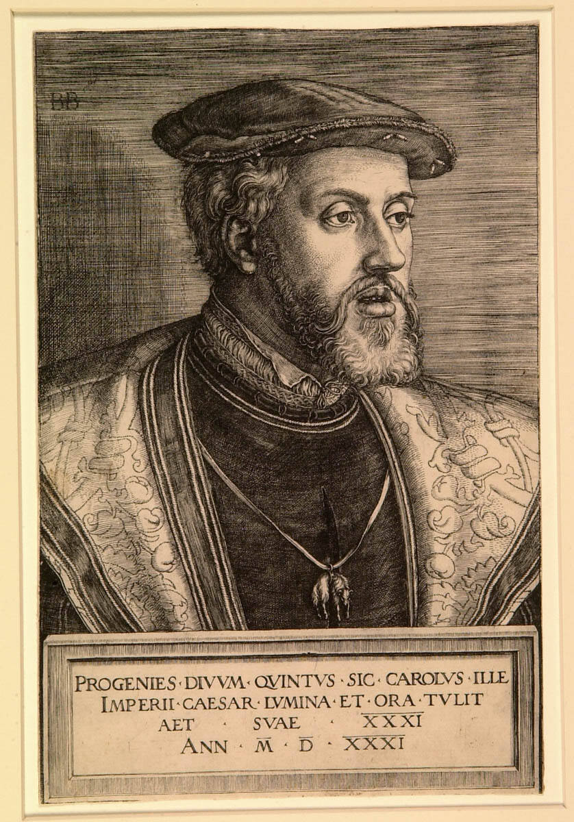 The sitter of this print was the most powerful man in Europe in the first half of the 16th century. As Holy Roman Emperor, Charles V's rule extended from Spain to Italy and Austria and to the recently gained Spanish possessions in the New World. He wears the order of the Golden Fleece, one of the most distinguished decorations of the Holy Roman Empire. Charles had a jutting jaw and pendulous lower lip, which this portrait softens. He is portrayed in a restrained way; he was powerful enough to be easily recognized and his status needed no emphasis.