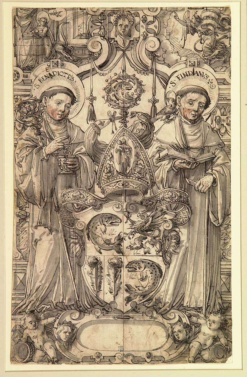 Old Master Drawings Selected from the Collection of Milton McGreevy, The Nelson-Atkins Museum of Art, Kansas City, MO, May 6-June 5, 1983, no. 2, as Design for a stained glass window—SS. Benedict and Findanus.