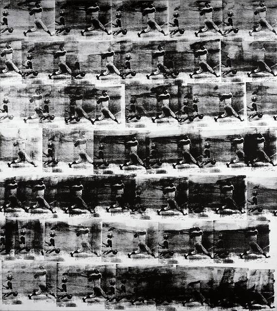 Baseball was the first photo-silkscreened painting by Warhol. It celebrates the American institution of baseball and incorporates a news photograph of New York Yankee Roger Maris. Maris became famous in 1961 after he broke Babe Ruth's home run record.