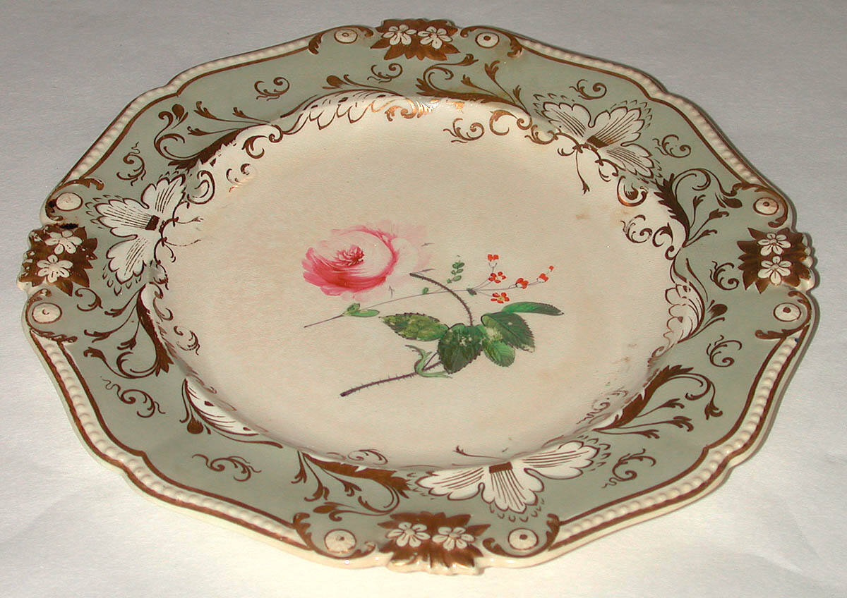 DescriptionA cream colored plate with gray border decorated with gilt flower and leaf design. In the center is a spray of flowers enameled in several colors.ProvenanceWith Boswell & Ward, London, by September 9, 1932 [1];