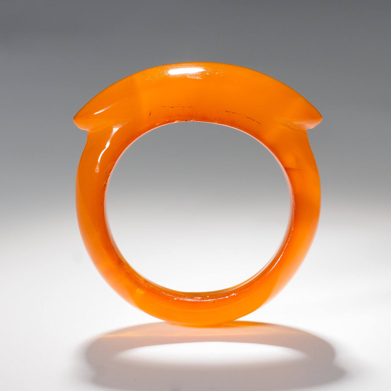 DescriptionRing carved from light yellow amber, made in the shape of a stirrup.