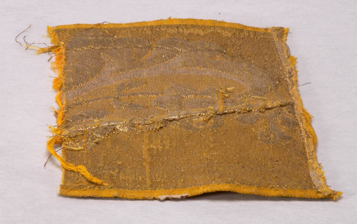 DescriptionFloral design in gold and silver on a gold background.